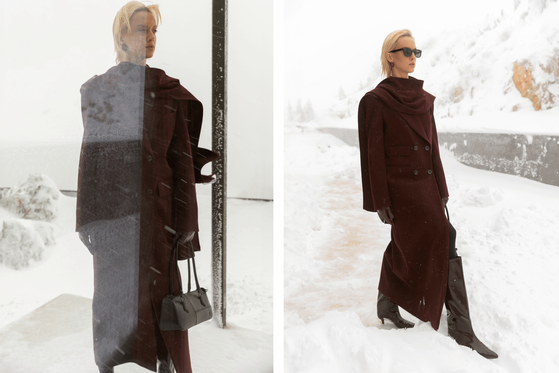 Kaput, šal, rukavice, čizme, torba, minđuše