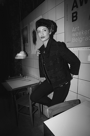 P....S....fashion midi suknja,majica,elegantan blejzer, marama, minđuše, šnala i rajf.