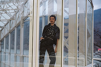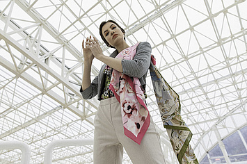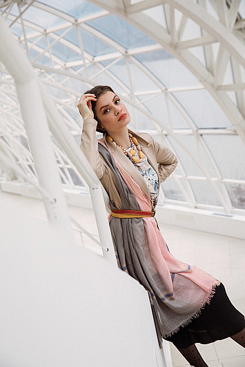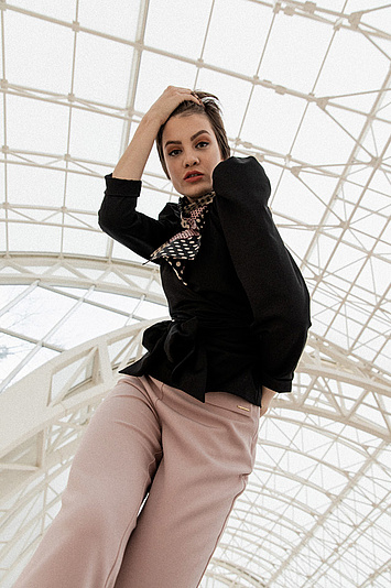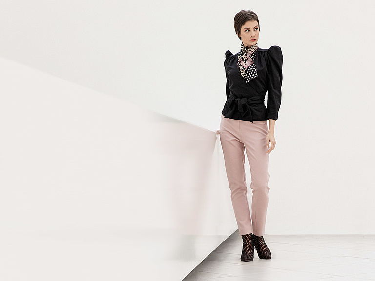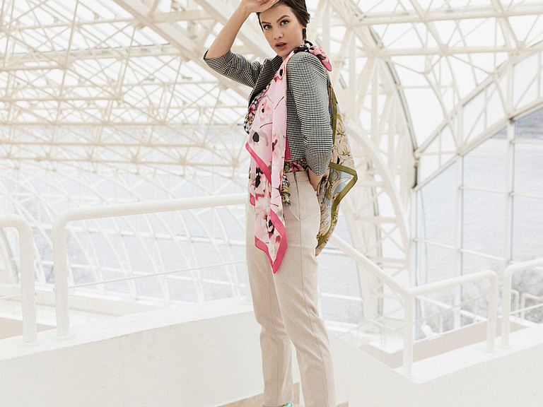 P....S....fashion pantalone, ešarpa, blejzer, bluza i ešarpa.