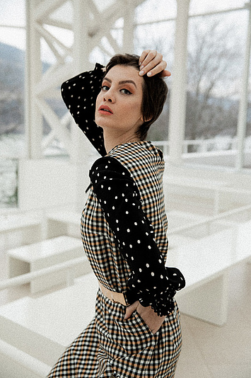 P....S....fashion pantalone, mantil, bluza, kaiš, minđuše i kaiš.