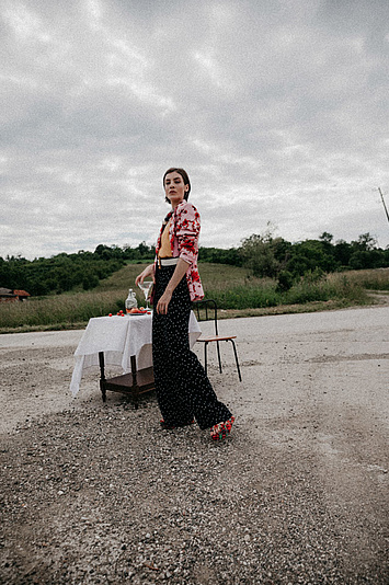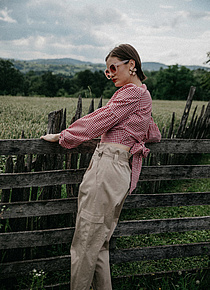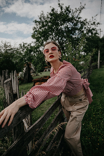 P....S....fashion pantalone, bluza, naočare i minđuše.