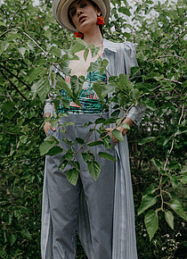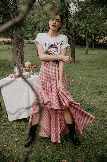 P....S....fashion suknja, majica, šešir i rajf.